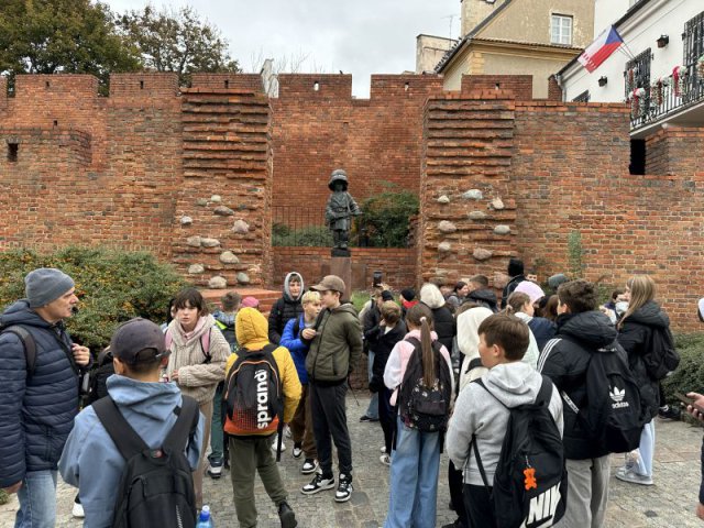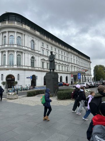 Następnie udaliśmy się na Plac Zwycięstwa, po drodze widzieliśmy sztuczną palmę, która już od lat wpisała się w krajobraz Warszawy oraz zatrzymaliśmy się przy Pałacu Prezydenta. Grób Nieznanego Żołnierza wzbudzał zadumę i wdzięczność żołnierzom walczącym w różnych zakątkach świata o wolność i niepodległość. Potem pomnik Mikołaja Kopernika, Stare Miasto, kolumna Zygmunta III Wazy, Zamek Królewski, mury getta, pomnik Małego Powstańca, pomnik Jana Kilińskiego, kamieniczki starej Warszawy, Kościół Świętego Krzyża, Archikatedra i Kościół Wniebowzięcia Najświętszej Marii Panny – to ważne przystanki na drodze naszego spaceru po stolicy.