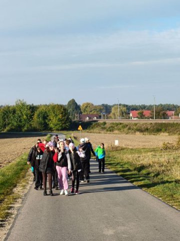 To był naprawdę słoneczny i ciepły dzień dodatkowo rozgrzany krokami uczniów i nauczycieli wędrujących przez Szozdy, Sochy, Górę Bukową, Roztoczański Park Narodowy aż do Zwierzyńca. Ruszyliśmy dziarsko, radośnie, ochoczo, choć poranek był nieco rześki. Szybko jednak wszystkim zrobiło się gorąco a zaciekawione słońce szło razem z nami jak wierny przyjaciel i ciepło ogrzewało buzie wędrowców. Cerkwisko, Hołda, krajobrazy tereszpolskich pól odzianych w jesienne barwy, kilka przystanków po drodze na złapanie oddechu i...ruszaliśmy dalej i dalej. Ważnym przystankiem naszego rajdu był cmentarz w Sochach i zapoznanie się (lub przypomnienie sobie) tragicznych wydarzeń z 1 czerwca 1943 roku. Modlitwa przy tablicy pamiątkowej, spacer między grobami i smutna refleksja o niewinnych ofiarach pogrążonych w wiecznym śnie na cmentarzu. Ważna lekcja historii najbliższej okolicy.
