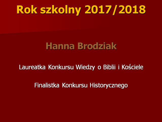 | kl. VIII | Julita Mituła, Jakub Chmura, Igor Kimak |