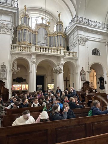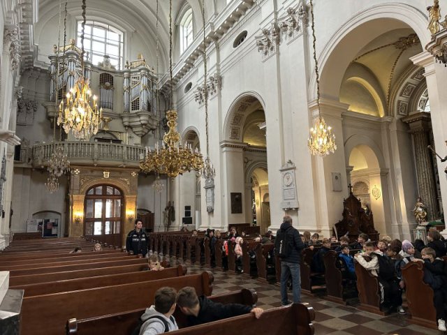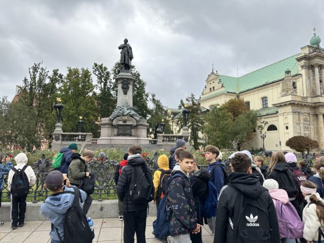 Następnie udaliśmy się na Plac Zwycięstwa, po drodze widzieliśmy sztuczną palmę, która już od lat wpisała się w krajobraz Warszawy oraz zatrzymaliśmy się przy Pałacu Prezydenta. Grób Nieznanego Żołnierza wzbudzał zadumę i wdzięczność żołnierzom walczącym w różnych zakątkach świata o wolność i niepodległość. Potem pomnik Mikołaja Kopernika, Stare Miasto, kolumna Zygmunta III Wazy, Zamek Królewski, mury getta, pomnik Małego Powstańca, pomnik Jana Kilińskiego, kamieniczki starej Warszawy, Kościół Świętego Krzyża, Archikatedra i Kościół Wniebowzięcia Najświętszej Marii Panny – to ważne przystanki na drodze naszego spaceru po stolicy.