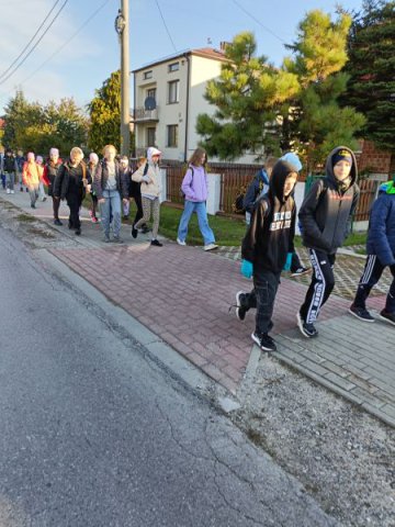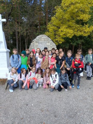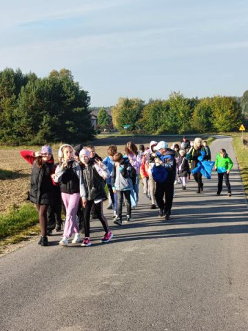 To był naprawdę słoneczny i ciepły dzień dodatkowo rozgrzany krokami uczniów i nauczycieli wędrujących przez Szozdy, Sochy, Górę Bukową, Roztoczański Park Narodowy aż do Zwierzyńca. Ruszyliśmy dziarsko, radośnie, ochoczo, choć poranek był nieco rześki. Szybko jednak wszystkim zrobiło się gorąco a zaciekawione słońce szło razem z nami jak wierny przyjaciel i ciepło ogrzewało buzie wędrowców. Cerkwisko, Hołda, krajobrazy tereszpolskich pól odzianych w jesienne barwy, kilka przystanków po drodze na złapanie oddechu i...ruszaliśmy dalej i dalej. Ważnym przystankiem naszego rajdu był cmentarz w Sochach i zapoznanie się (lub przypomnienie sobie) tragicznych wydarzeń z 1 czerwca 1943 roku. Modlitwa przy tablicy pamiątkowej, spacer między grobami i smutna refleksja o niewinnych ofiarach pogrążonych w wiecznym śnie na cmentarzu. Ważna lekcja historii najbliższej okolicy.